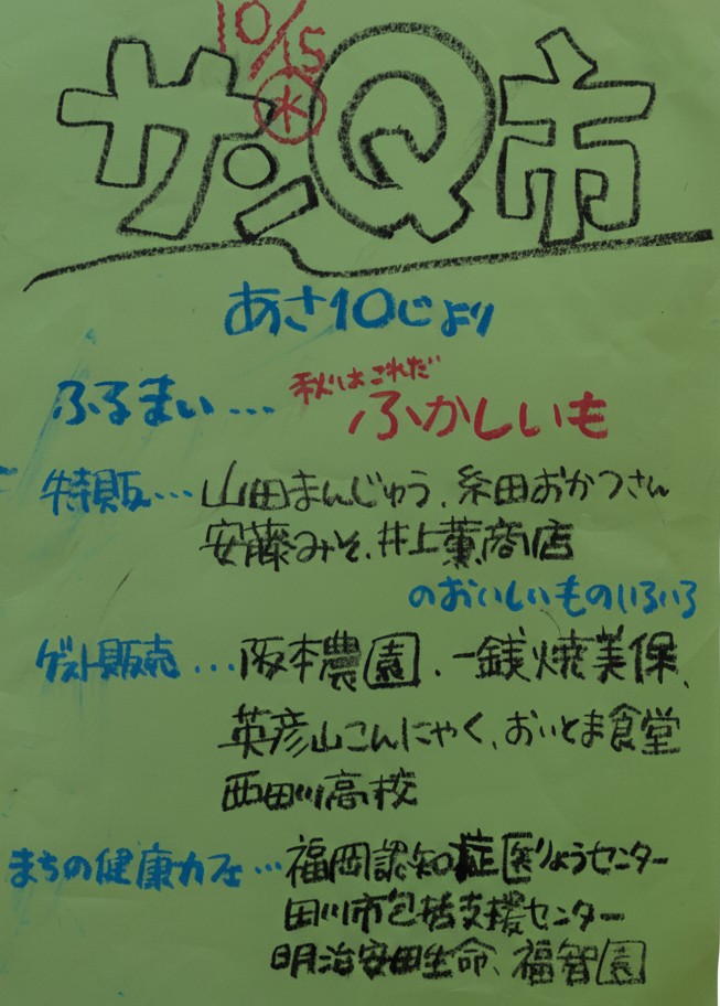 後藤寺商店街一丁目サンシャイン通り『サンQ市』、三丁目『わいわい市』は10月15日水曜の開催となります。